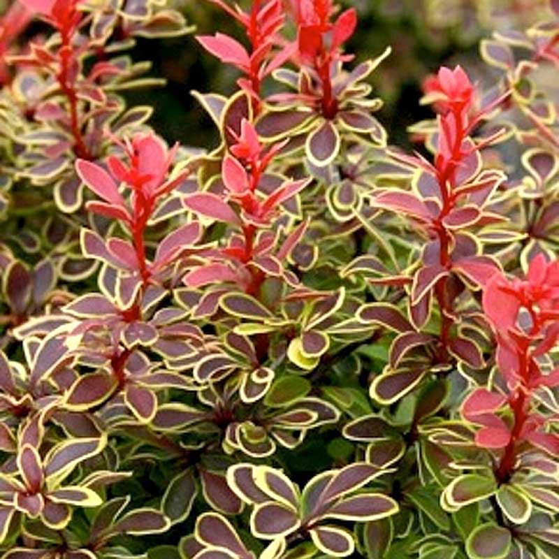 Раскидистый кустарник, высота которого может достигать 1 метра. Листья овально-яйцевидные, с ровным краем, коричневато-красные с небольшой зеленовато-желтой каймой. Побеги дугообразные, ниспадающие с тонкими, одиночными колючками. Корневая система поверхностная. Цветет в конце мая. Цветки желтые с красноватым оттенком, одиночные или собраны в маленькие кисти. Плоды - ягоды, красные, округлые, блестящие, долго остаются на растении, несъедобные.