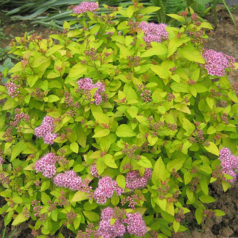 Эффектный карликовый кустарник с необычным цветом листьев, хорошо поддающийся обрезке и формированию кроны. Кустарнику придает оригинальности необычная золотая листва, которая в течение сезона меняет свой оттенок и становится красноватой, охристой, бронзовой, сочно-оранжевой. Сами пластины имеют овальную форму, по краям зазубрены. Соцветия щитковидные, плотные, диаметром до 4 см, красного или розово-пурпурного оттенка.