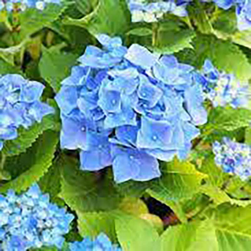 Крупнолистный среднерослый кустарник с округлой кроной. Соцветия крупные, шаровидные, сначала белые, затем голубые или синие. На интенсивность окраса влияет кислотность грунта. Цветение июль-сентябрь.