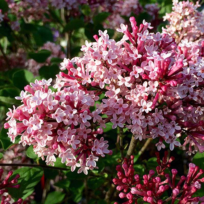 Сирень Ред Пикси представляет собой компактный, медленнорастущий, плотный куст высотой до 120 сантиметров. Форма куста – шарообразная. Листья широкоовальные с заостренным приподнятым кончиком, длиной 3-4 см. Внешняя сторона листовой пластины цвета темной зелени с бликом, изнанка светлее и имеет легкую опушку по прожилкам. Сирень Мейера – один из самых низкорослых видов сирени, из-за чего ее относят к «балконной» группе.