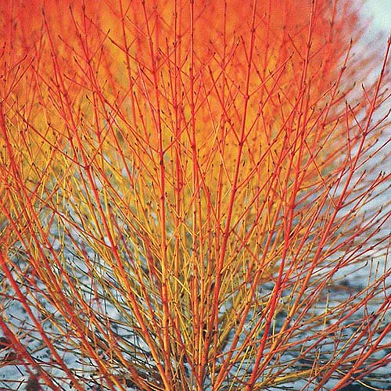 Быстрорастущий раскидистый кустарник, молодые побеги которого летом зеленовато-желтые, зимой - яркие оранжево-красные, с возрастом становятся тускло желтыми. В зимний период ветви выглядят двуцветными: в нижней части - желтые или палево-желтые, а вверху - красные. Листья эллептические, заостренные, зеленого цвета. Цветет в мае, белыми соцветиями. Плоды черные округлые.