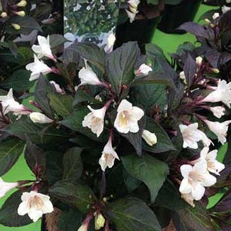 Компактный декоративный кустарник с продолжительным и красочным цветением. Листья весной черно-коричневые, летом коричнево-зеленые, а затем постепенно приобретают фиолетовый оттенок. Цветки белые, красиво контрастируют на фоне тёмно-зелёных с фиолетовым оттенком листьев.