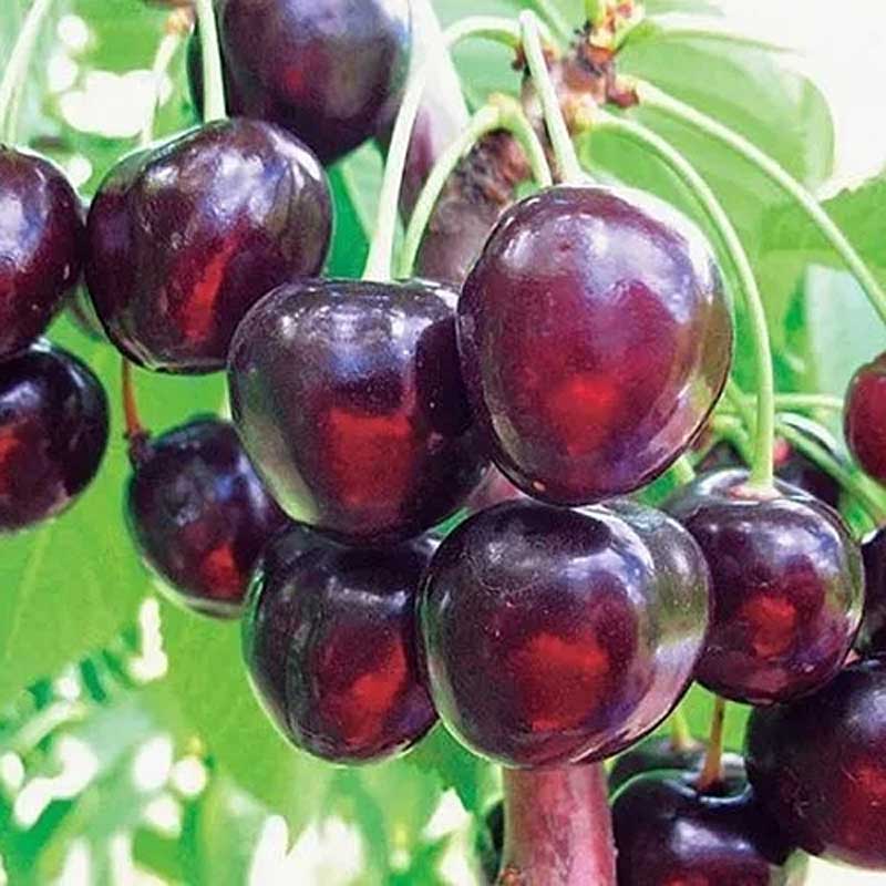 Оленька представляет собой сильнорослое дерево, которое в здоровой среде набирает высоту до 5 метров. У черешни округлая или широкоовальная крона хорошей загущенности темно-зелеными листьями, пряморастущие побеги зеленовато-коричневого окраса и умеренная ветвистость. Крупноплодные ягоды характеризуются сердцевидной или тупосердцевидной формой с заметным сжатием по бокам. На здоровом дереве вырастают ягоды массой более 7 граммов (7,3 г). Темно-красная мякоть со светлыми прожилками имеет нежную, мясистую, умеренно-плотную и сочную мякоть. Вкус у ягоды благородный и сбалансированный – приятная сладость отлично сочетается с прохладной кислинкой. Темно-вишневый сок имеет насыщенный и густой вкус. Крупная косточка легко отделяется от мякоти. Черешня раннеспелая. Первый урожай дерево дает на 4-5-й год после посадки.
