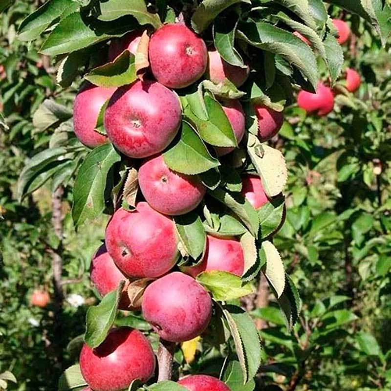 "Компактная колоновидная яблоня, высотой 1,7-2,1м.Размер плодов колеблется от средних, до крупных 130-160 г, достигают 200-220. Они уплощенно-округлые, шаровидные, одномерные, гладкие. Ребристость выражается слабо, она сглажена и малозаметна. Кожица средней твердости, слегка эластичная, желтовато-зеленой окраски, глянцевая, блестящая. Имеет покровный румянец малинового, ярко-красного, свекольного оттенка. Подкожные точки малочисленные, светлые, большого размера, размещены равномерно, видны хорошо. Мякоть плотная, мелкозернистая, очень сочная, ароматная. Она приятной консистенции, белого цвета, но может иметь легкий лимонный или кремовый отлив. Вкус медово-сладкий, но легкая характерная кислинка в послевкусии. Устойчив к низким зимним температурам и парше.