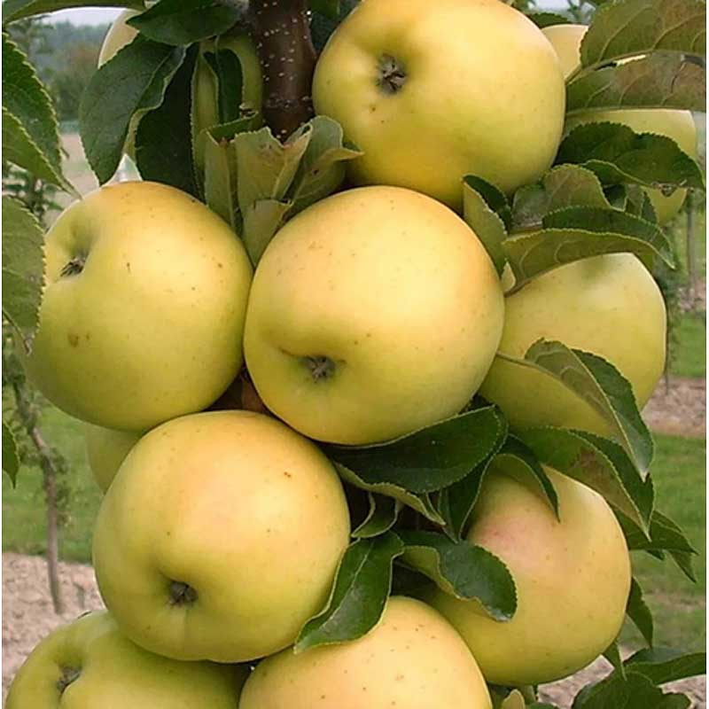Среднерослое, колоновидное дерево, высотой 2-2,2 м. Крона отличается компактными размерами и малыми габаритами. Плоды крупные, массой от 100 до 250 г, округлой формы. Кожица плотная, нежно-желтого цвета, без покровной окраски. Мякоть белая, сочная, ароматная, крупнозернистая, сладкого вкуса, с медовым привкусом. Съемная зрелость плодов приходится на конец августа - начало сентября. Первое плодоношение возможно в год посадки. Морозостойкость, устойчивость к болезням и вредителям - высокая.