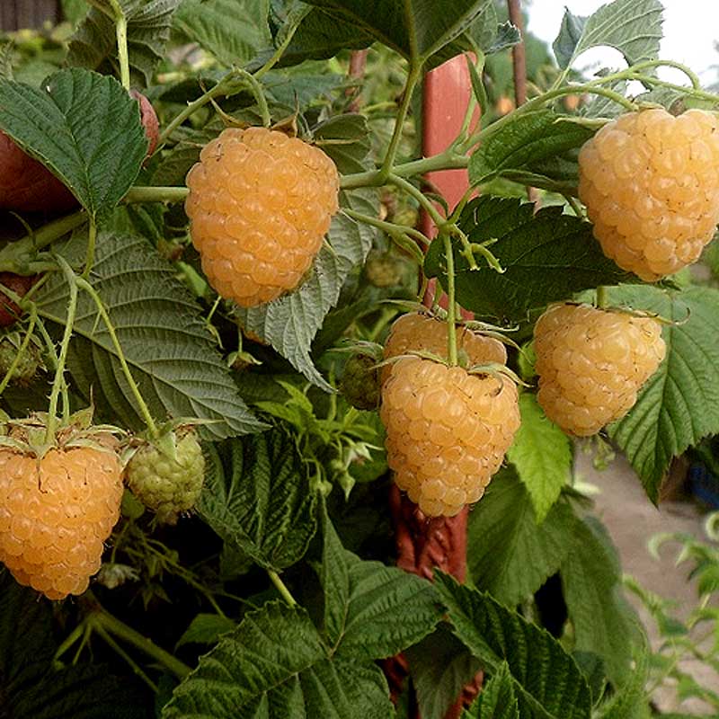Желтая Зюгана (Золотая Зюгана) – это малина шведской селекции, которая имеет универсальное назначение. Этот сорт отличается высокой урожайностью, достигающей до 6 кг с одного куста. Он также обладает хорошей транспортабельностью. Малина Желтая Зюгана имеет прямостоячий куст, который может достигать высоты до 180 см. Побеги этого растения мощные и крепкие. Листья гофрированные, крупные и темно-зеленые. Количество шипов на растении минимально. Ягоды малины Желтая Зюгана начинают созревать в первой половине лета и продолжают зреть до осени. Первая волна плодоношения приходится на июль, а вторая начинается в сентябре и заканчивается ближе к октябрю. Цвет малины Желтая Зюгана – желто-оранжевый, а форма – конусообразная. Вес каждого экземпляра может варьироваться от 6-8 до 10-11 граммов. Вкус ягод этого сорта малины можно описать как медовый. Мякоть ягод сочная, аромат – приятный.
