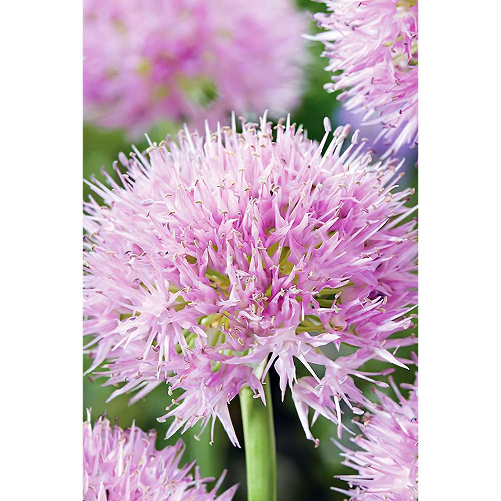 Изящный и декоративный сорт. Его главная отличительная особенность – огромная цветочная шапка. Ажурный шар состоит из мелких нежно-розовых цветков-звездочек.
