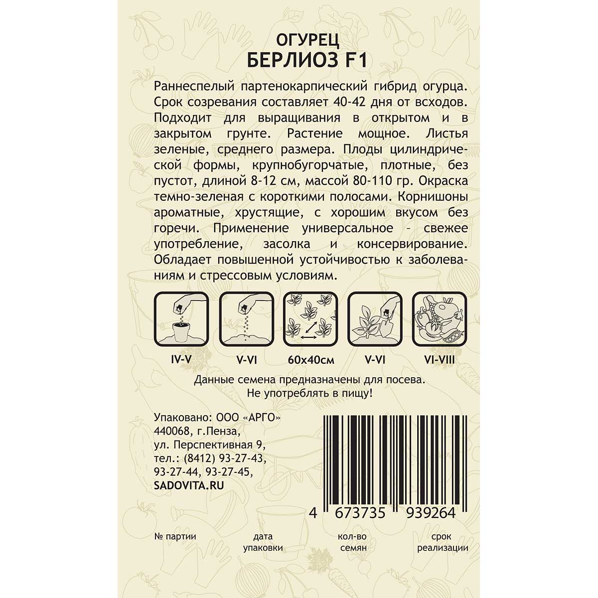 Раннеспелый партенокарпический гибрид огурца. Срок созревания составляет 40-42 дня от всходов. Подходит для выращивания в открытом и в закрытом грунте. Растение мощное. Листья зеленые, среднего размера. Плоды цилиндрической формы, крупнобугорчатые, плотные, без пустот, длиной 8-12 см, массой 80-110 гр. Окраска темно-зеленая с короткими полосами. Корнишоны ароматные, хрустящие, с хорошим вкусом без горечи. Применение универсальное – свежее употребление, засолка и консервирование. Обладает повышенной устойчивостью к заболеваниям и стрессовым условиям.