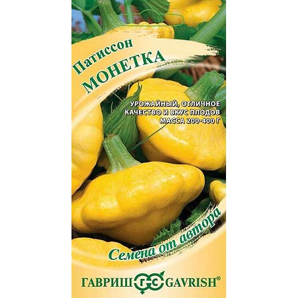 Среднеспелый (55-60 дней от всходов до начала плодоношения) урожайный сорт. Растение полуплетистое, ветвление имеется. Преимущественно женского типа цветения. Одновременно формирует большое количество завязей. Плоды дисковидные, желтого цвета массой 200-400 г. Мякоть кремовая, нежная, средней плотности, сочная. Вкус и качество плодов отличные. Рекомендуется для домашних заготовок, консервирования, тушения и замораживания. Выращивают прямым посевом в открытый грунт или рассадным способом. Плодоносит долго и обильно. В уходе не требователен. Хорошо отзывается на внесение органических удобрений, холодостоек.