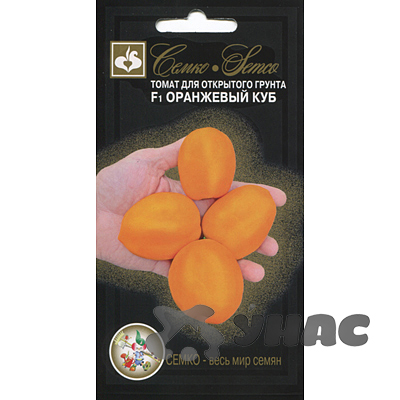 Томат Оранжевый Куб F1 - ранний, детерминантный гибрид томата для открытого грунта. От всходов до начала плодоношения 95-100 дней. Соцветие простое, в кисти 5-7 плодов. Помидоры округло-кубовидные с небольшим “носиком” (20-30% плодов), насыщенно оранжевые, массой 90-100 граммов, без зелёного пятна у плодоножки. Отличается великолепными вкусовыми качествами, содержание ?-каротина 3,5-3,8 мг%, витамина С 26-28 мг%, сахаров 4-4,3%, сухих веществ 6-6,5%. Жаро- и засухоустойчивый. Товарность и транспортабельность высокие. Томат Оранжевый Куб F1 устойчив к вирусу томатной мозаики (ToMV), вертициллёзному увяданию (Va,Vd), фузариозу (Fol 1-2) и альтернариозу (Asc). Рекомендуется для выращивания в плёночных теплицах и открытом грунте. Используют для потребления в свежем виде, цельноплодного консервирования и на томатопродукты. Схема посадки 70х30 см. Урожайность в открытом грунте 10-12 кг/м2, в теплицах свыше 15 кг/м2.