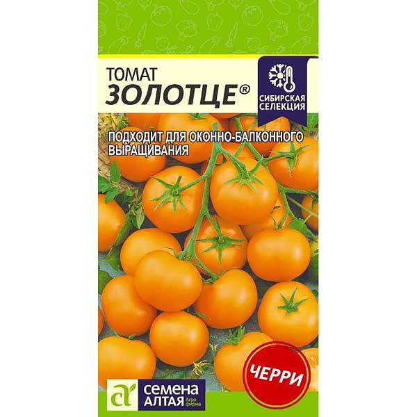 Селекция Агрофирмы «Семена Алтая». Раннеспелый супердетерминантный (высота 25-30 см) сорт для выращивания в открытом грунте, пленочных теплицах, а также в комнатных условиях в качестве горшечной культуры. Куст усыпан плодами золотисто-желтой окраски, массой 25 г. Очень вкусные, сладкие плоды — настоящее лакомство для детей и взрослых. Прекрасно подходят для украшения блюд, великолепны в засолке.