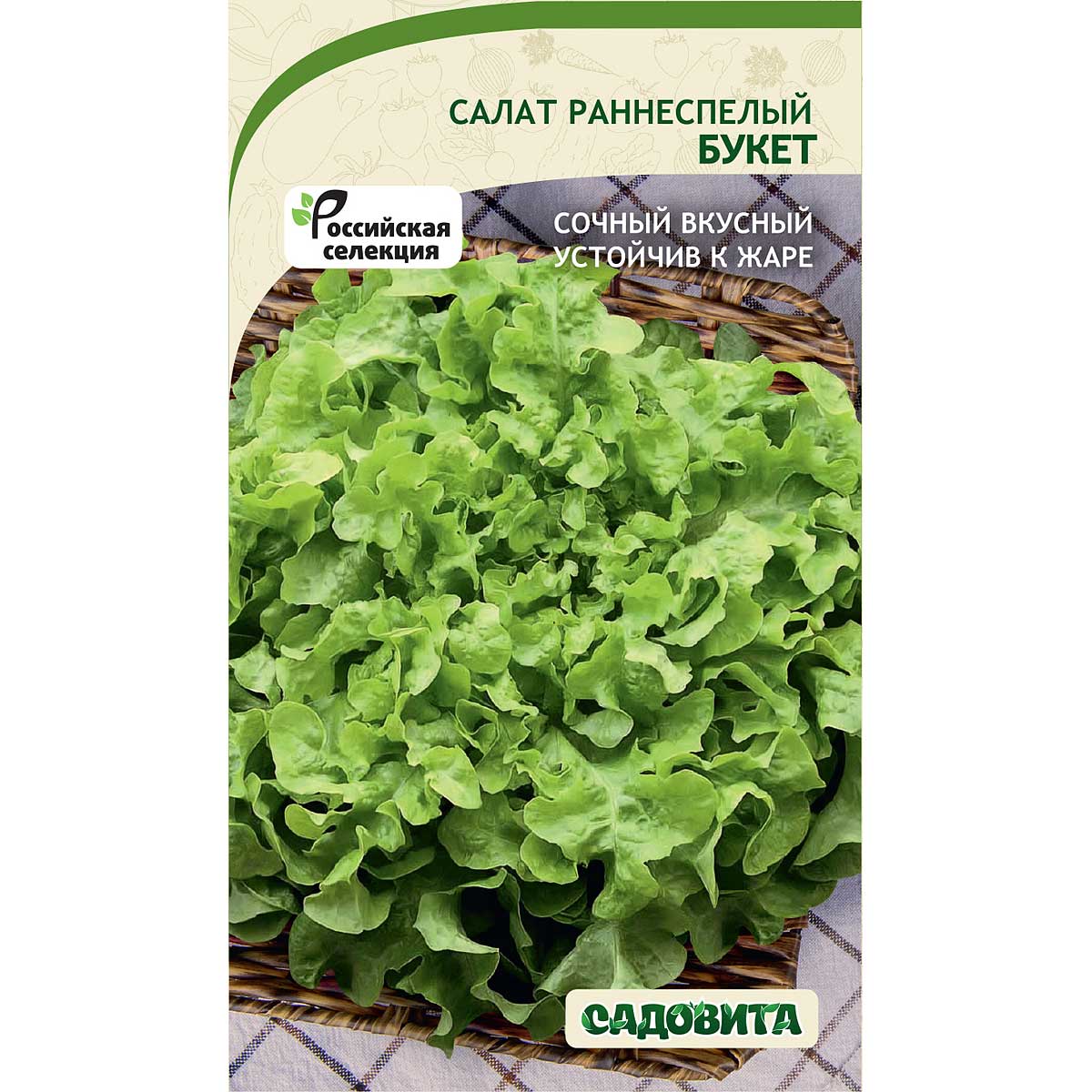 Раннеспелый сорт листового салата. Срок созревания составляет 45-50 дней от всходов. Подходит для выращивания в открытом грунте и горшках. Листовая розетка приподнятая, диаметром 30-35 см, массой 350-500 гр. Листья маслянистые, сочные, крупные со слабоволнистым краем. Окраска желто-зеленая. Вкус отличный. Подходит для употребления в свежем виде и для декорирования блюд. Урожайность хорошая – до 4 кг с 1 кв.м. Сорт устойчив к высоким температурам.
