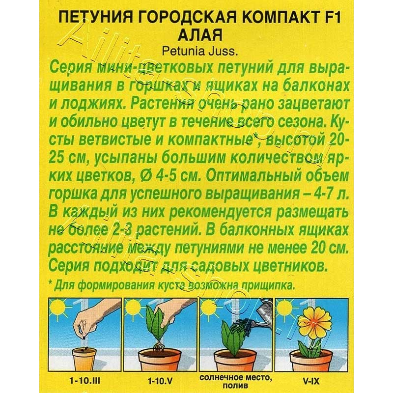 Серия мини-цветковых петуний для выращивания в горшках и ящиках на балконах и лоджиях. Растения очень рано зацветают и обильно цветут в течение всего сезона. Кусты ветвистые и компактные*, высотой 20-25 см, усыпаны большим количеством ярких цветков, Ø 4-5 см. Оптимальный объем горшка для успешного выращивания – 4-7 л. В каждый из них рекомендуется размещать не более 2-3 растений. В балконных ящиках расстояние между петуниями не менее 20 см. Серия подходит для садовых цветников.