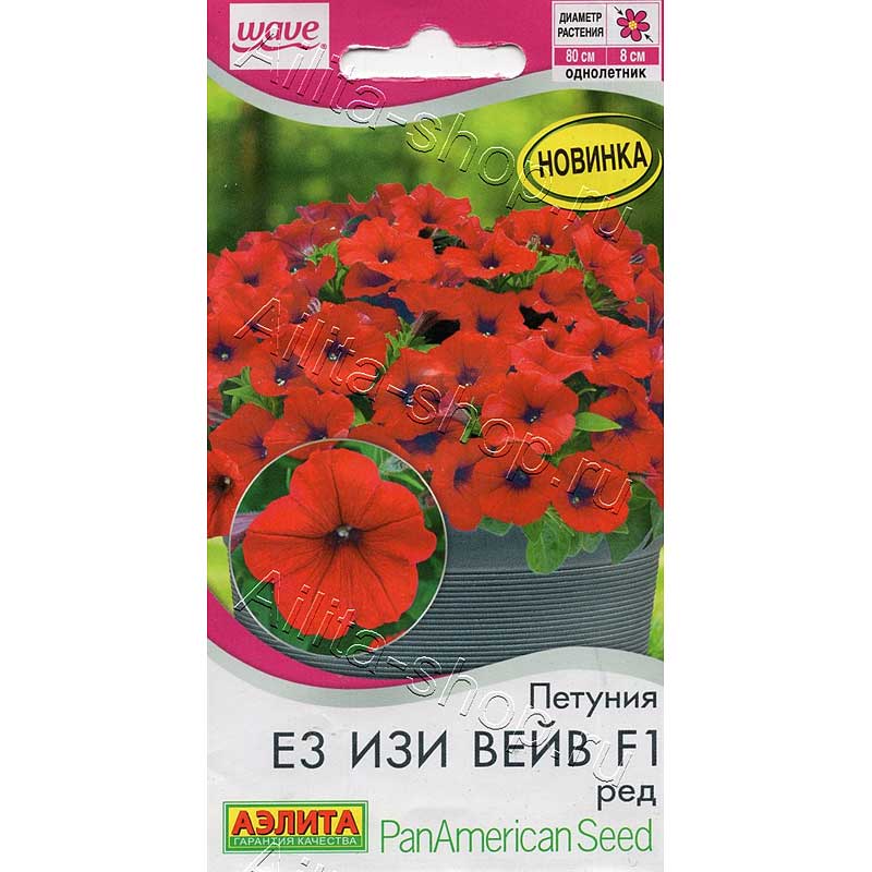 Отличается очень ранним и длительным цветением. Петуния Е3 Изи Вейв Ред F1 станет украшением любого пространства – балкона, беседки, клумбы и сада. На растении высотой 15-30 см и шириной 60-80 см образуется множество крупных с ярких красных цветков диаметром 7-8 см. Растения хорошо разрастаются, формируя плотный куст с крупными цветками, и лишь потом разрастаются в стороны, образуя ниспадающий каскад. Характеризуются выровненностью кустов, хорошим габитусом и универсальностью использования. Петунии требовательны к условиям выращивания, чтобы петуния полностью раскрыла свой потенциал, рекомендуем объем кашпо 7-10 л на одно растение и схему посадки в грунте – 35х35 см.