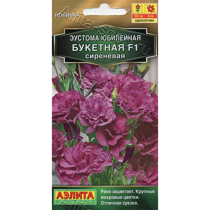 Раннецветущая гибридная серия крупноцветковой эустомы. Одна из лучших по своим генетическим свойствам. Изящные крепкие кустики достигают высоты 90-100 см. Отлично ветвятся, одновременно образуя целое море пышных цветков диаметром 7-8 см. Махровая эустома – это, пожалуй, самое модное растение для букета и цветочного оформления, особенно в свадебном дизайне. В срезке нежные лепестки надолго сохраняют свежесть и опрятный вид. Гибрид можно выращивать в домашних условиях с обязательным досвечиванием. Для пышного и длительного цветения рекомендуются подкормки раз в 10 дней.