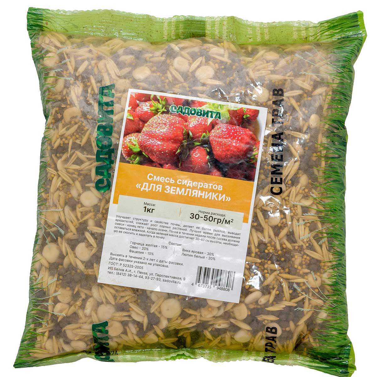 Улучшает структуру и свойства почвы, делает ее более рыхлой, выводит вредителей, снижает рост сорных растений. Лучшее время для высеивания смеси - конец лета - начало осени. Почва в течении недели после посева должна оставаться влажной. Когда зеленая масса достигнет 30-40 см высоты, необходимо ее скосить и заделать в почву. Норма расхода семян 30-50 гр. на кв. м.