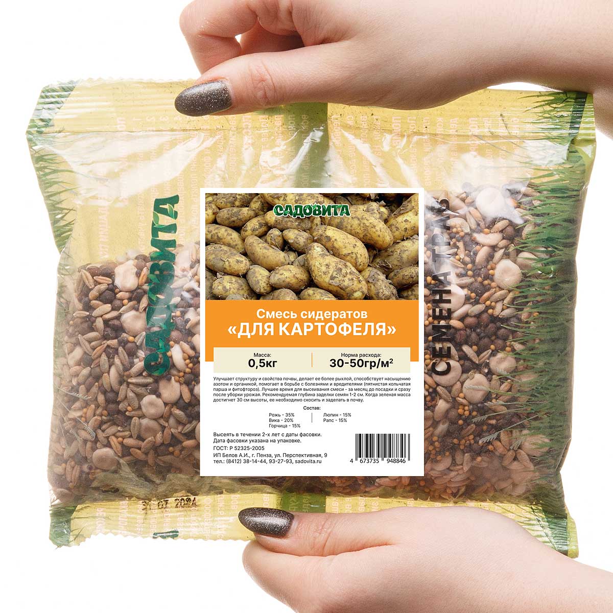 Улучшает структуру и свойства почвы, делает ее более рыхлой, способствует насыщению азотом и органикой, помогает в борьбе с болезнями и вредителями (пятнистая кольчатая парша и фитофтороз). Лучшее время для высеивания смеси - за месяц до посадки и сразу после уборки урожая. Рекомендуемая глубина заделки семян 1-2 см. Когда зеленая масса достигнет 30 см высоты, ее необходимо скосить и заделать в почву. Норма расхода семян 30-50 гр. на кв.м.