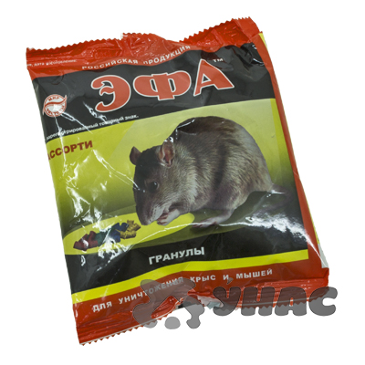 Готовая к применению приманка в виде гранул для уничтожения домовых мышей, полевок и других мышевидных грызунов, а также серых и черных крыс. Применяется на объектах различных категорий, включая пищевые, лечебные, детские учреждения (за исключением спален, игровых комнат, столовых). Приманка содержит горькую добавку «битрекс», предотвращающую случайное съедение приманки человеком или домашними животными (кроме грызунов). В качестве действующего вещества используется – бромадиолон. Бромадиолон – это родентицид, из класса антикоагулянтов, имеет отсроченный срок действия. Вещество, попадая в организм грызуна, замедляет синтез протромбина в печени. Это приводит к снижению свертываемости крови и истончению стенок кровеносных сосудов. Гибель грызунов наступает на 2-7 день с момента поедания приманки.