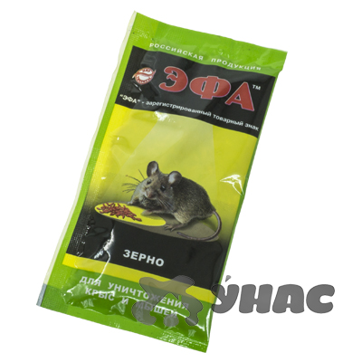 Готовая к применению зерновая приманка для уничтожения домовых мышей, полевок и других мышевидных грызунов, а также серых и черных крыс. Применяется на объектах различных категорий, включая пищевые, лечебные, детские учреждения (за исключением спален, игровых комнат, столовых). Приманка содержит горькую добавку «битрекс», предотвращающую случайное съедение приманки человеком или домашними животными (кроме грызунов). Действие активного компонента (бромадиолон – 0,005%), которое относится к самой современной группе, обеспечивает эффективное уничтожение грызунов на 5-8 день после однократного поедания. Специальный сильный привлекатель гарантирует хорошую поедаемость отравленной приманки крысами и мышами. После приема зерна у грызунов начинается уменьшение, а затем дефицит витамина К. Через 5-8 дней это приводит к внутреннему кровоизлиянию и безболезненной гибели грызуна. Состав: бромадиолон (0,005%), аттрактант пищевой, пищевая основа, краситель, битрекс.