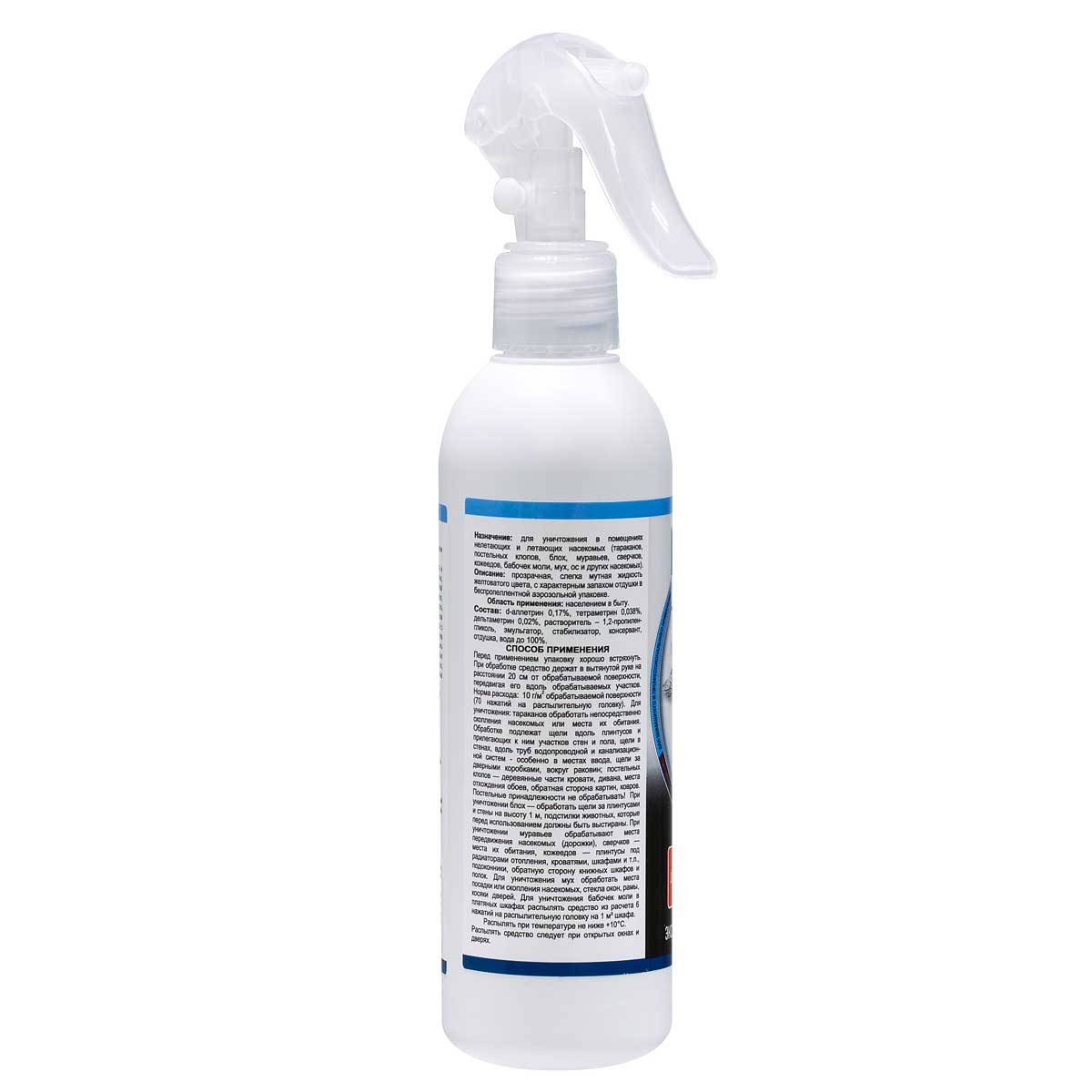 - Уничтожает всех летающих и ползающих насекомых.
