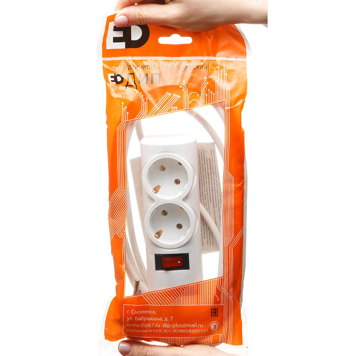 Компактный бытовой удлинитель на 2 гнезда 3 метра ПВС 3*0,75 с заземлением, цвет белый. Рассчитан на одновременное подключение к розетке до двух электроприборов. Длина шнура 3 метра. Корпус изготовлен из прочного негорючего полипропилена с защищающими от возгорания антипиренами.