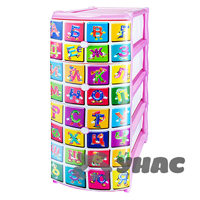 Комод с рисунком «Алфавит» - практичный и функциональный предмет мебели, который прекрасно дополнит любую детскую комнату! За счёт компактных размеров, представленная модель не загромождает пространство и будет уместно смотреться даже в небольшой детской комнате. Благодаря оригинальному дизайну передней панели, комод гармонично впишется в любой современный интерьер и поможет расставить цветовые акценты.Комод с рисунком «Алфавит английский» выполнен из прочного пластика, который абсолютно безопасен для здоровья, т.к. не содержит бисфенол А. Модель состоит из четырёх ящиков, которые плавно и совершенно бесшумно закрываются. Красочный декор, нанесённый с помощью IML-технологии, не стирается и не повреждается в процессе использования. Он устойчиво стоит на любой поверхности, будь то паркет, ламинат, плитка или ковёр. Он не требователен в уходе, легко содержать в чистоте - достаточно протереть влажной салфеткой. Конструкция комода проста в сборке, и имеет минимальный вес. Модель оснащена утонченными и устойчивыми