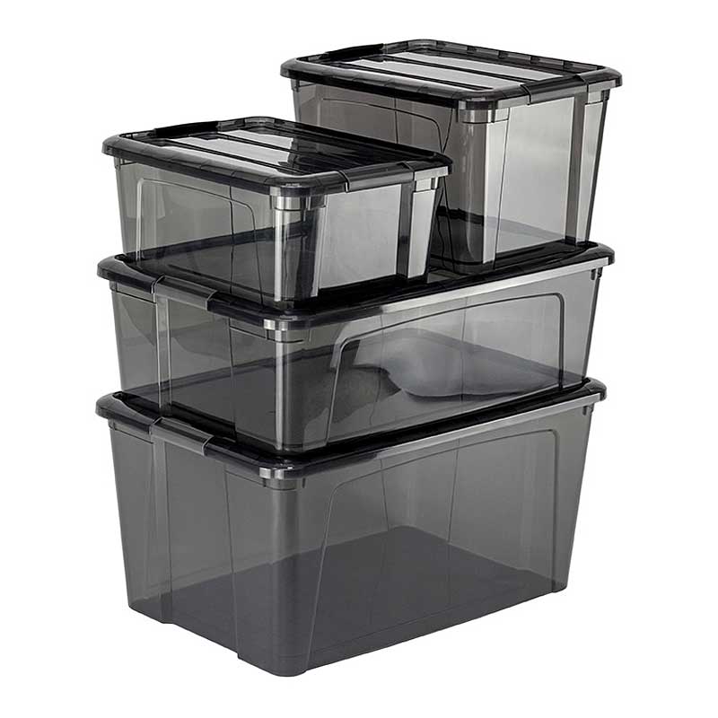 Ящики для хранения с замками помогают рационально организовать пространство и поддерживать идеальный порядок.Ящики отличаются большой вместимостью и многофункциональностью. Этот аксессуар позволит содержать в порядке как жилые, так и нежилые помещения. Они идеально разместятся под кроватью или в гардеробной.Линейка состоит из ящиков крупных размеров с замками. Замки надёжно защищают содержимое от пыли и влаги.Хорошо штабелируются. Конструкция ящиков позволяет комбинировать их друг с другом для оптимального использования пространства.Материал обладает повышенной эластичностью, за счёт чего коробки более прочные и прозрачные.Ящики не имеют острых углов, поэтому их можно использовать даже в детской комнате.Через прозрачные корпус и крышку ящика видно содержимое.