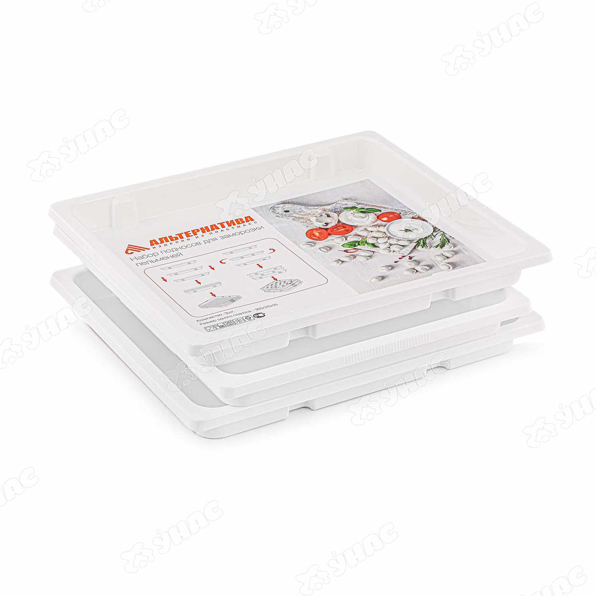 Белые пластиковые подносы для заморозки пельменей и полуфабрикатов