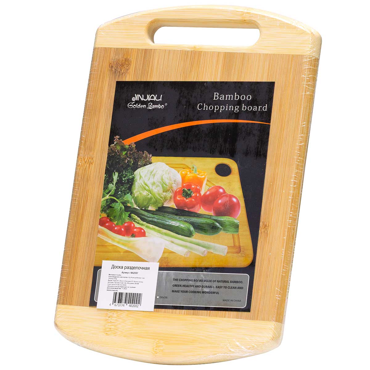Бамбук - экологичный, долговечный, антисептический, материал. За счет этого разделочная доска обладает высокой прочностью, устойчива к влаге, механическим повреждениям, надолго сохранит лезвие ножа острым. Материал не выделяет вредных веществ и абсолютно безопасен для здоровья. Доска прочная и практичная: не займет много места на вашей кухне, но при этом доска легкая и портативная.