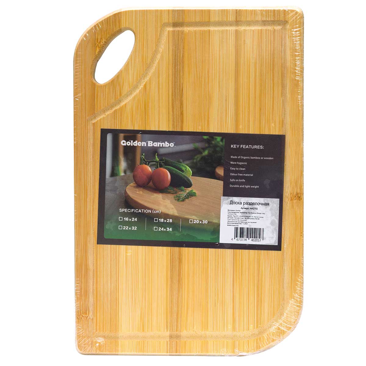 Бамбук - экологичный, долговечный, антисептический, материал. За счет этого разделочная доска обладает высокой прочностью, устойчива к влаге, механическим повреждениям, надолго сохранит лезвие ножа острым. Материал не выделяет вредных веществ и абсолютно безопасен для здоровья. Доска прочная и практичная: не займет много места на вашей кухне, но при этом доска легкая и портативная.