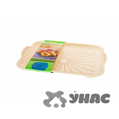 Дуршлаг - это необходимый кухонный инвентарь в любой квартире или на даче. Он используется для отцеживания жидкости из продуктов питания, таких как макароны; овощи и фрукты; ягоды и мясо. Подходит для их ополаскивания, промывки и сушки в дальнейшем. Материал изготовления - пищевой пластик, отличающийся безопасностью при использовании по назначению. Благодаря своей плоской форме, изделие занимает меньше места, чем обычное объемное сито, и без труда укладывается в шкаф. Более того, эта утварь не требует особого ухода - легко моется водой с моющими средствами для посуды. Дуршлаг оснащен устойчивым основанием, а также для удобства имеются две ручки по бокам.