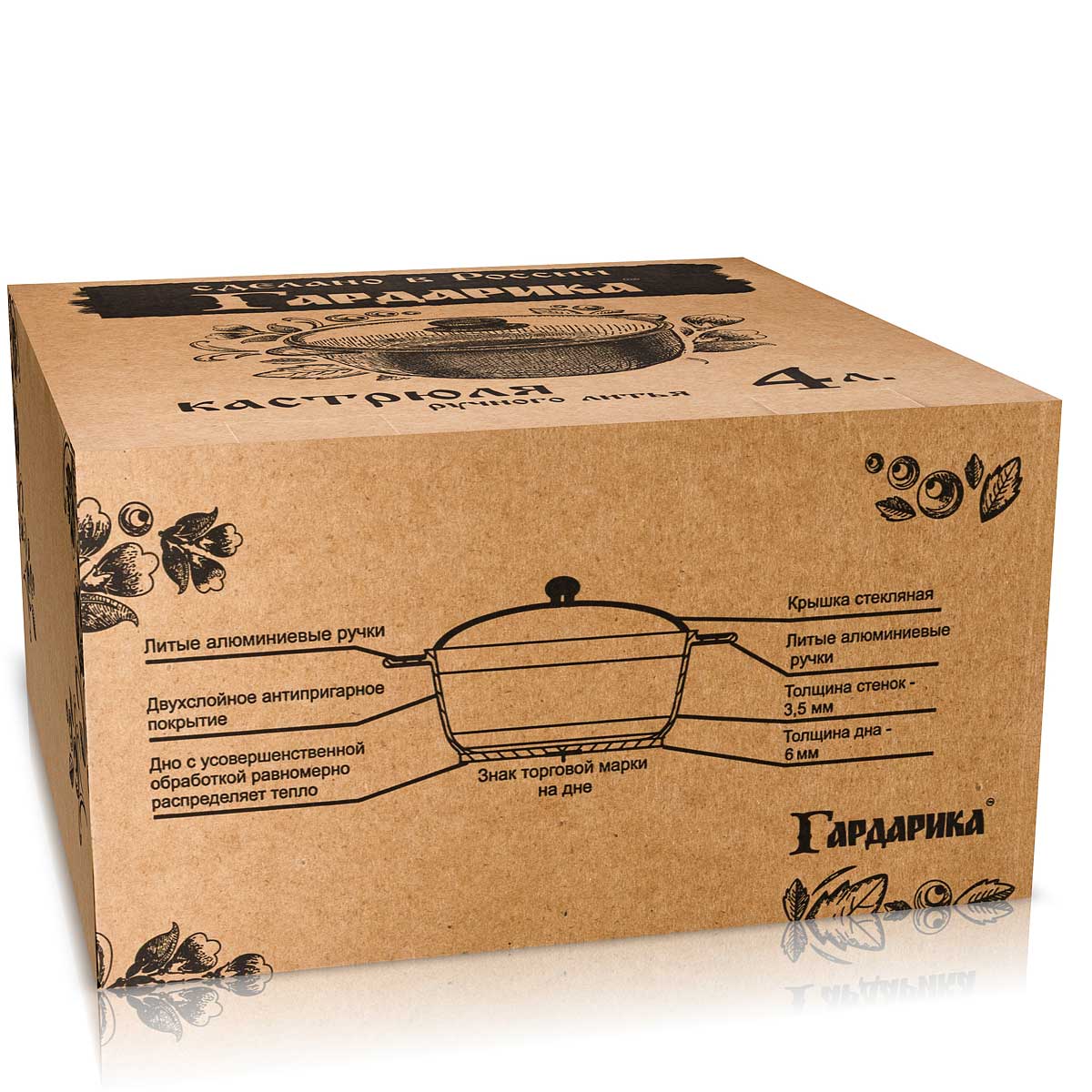 Кастрюля из литого алюминия подходит для ежедневного приготовления разнообразных блюд. Изделие произведено в соответствии со строгими нормами технического контроля. Особенности: покрытие Greblon C2+ защищает от пригорания; удобные ручки облегчают хват; кастрюля имеет стеклянную крышку с пароотводом; поверхность изделия легко отмывается; благодаря качественной проточке дно прогревается максимально быстро. Кастрюлю можно мыть в посудомоечной машине. Объем 4л.