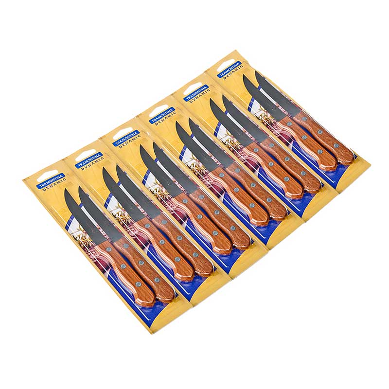 Классический нож для стейка маленького размера. Рукоять из светлого дерева, а лезвие из нержавеющей стали AISI 420. Продаётся по 2 штуки в блистере.