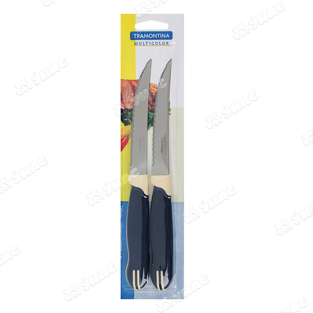 Благодаря уникальному методу закалки в несколько этапов (термическая закалка, охлаждение, промораживание, нагревание газом) сталь приобретает особую пластичность, коррозийно и жаростойкость, сохраняя твердость порядка 53 единиц по шкале Роквелла. Как результат, ножи Tramontina требуют более редкой правки и заточки, что обеспечивает более долгий срок службы по сравнению с ножами аналогичной стали других производителей. Рукоятка ножа Multicolor выполнена из полипропилена. Рукоятки серии Multicolor – долговечные, выдерживают температуру до 130C.