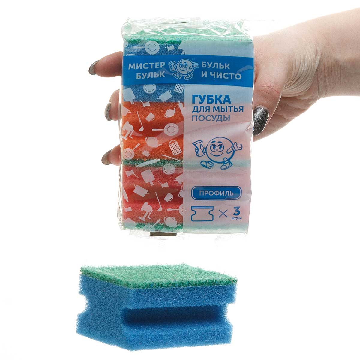 Губка для посуды Мистер Бульк Профи 3шт МБ 112 х30