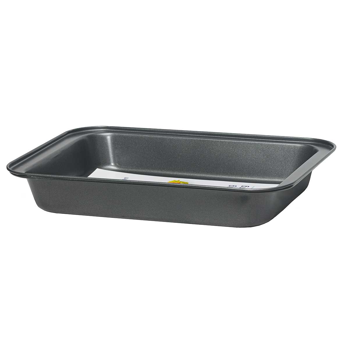 Противень для духовки изготовлен из высококачественной углеродистой стали с антипригарным покрытием, благодаря чему продуктовукты не пригорают и не прилипают к стенкам посуды. Кроме того, в противне для запекания готовить можно с добавлением минимального количества масла и жиров. Антипригарное покрытие также обеспечивает легкость мытья. Есть возможность использования в посудомоечной машине. Хранение на занимает много места, и может быть в духовом шкафу.