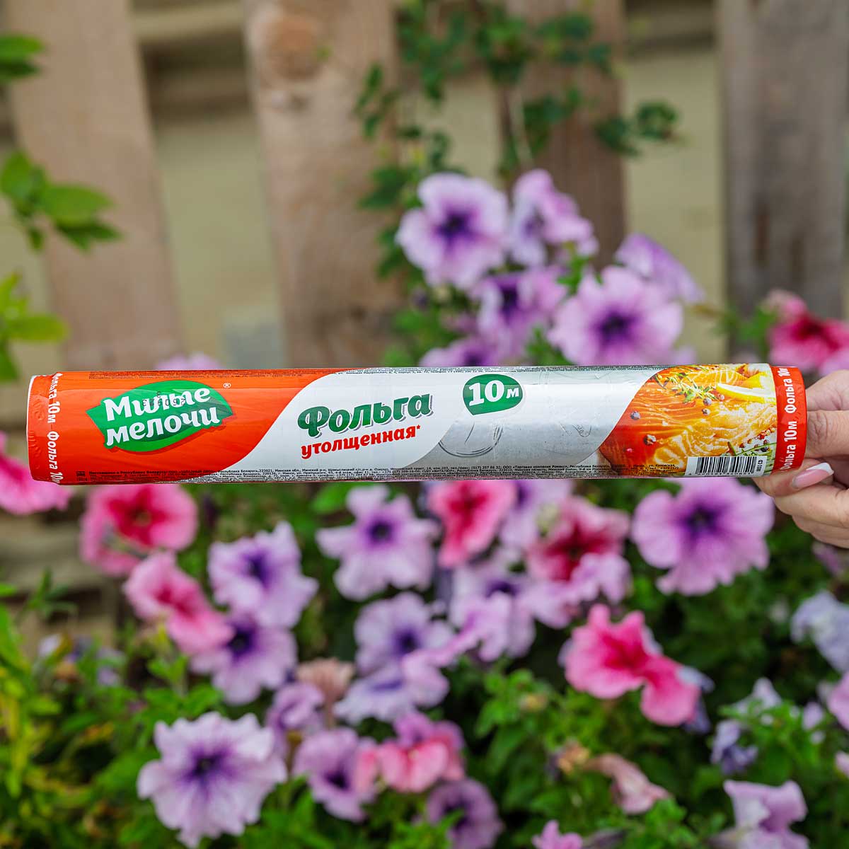 Алюминиевая фольга от бренда Милые мелочи идеальна для запекания различных блюд на кухне. Её плотная структура обеспечивает равномерное распределение тепла во время выпечки. Широкая фольга защитит продукты от излишних температурных колебаний.