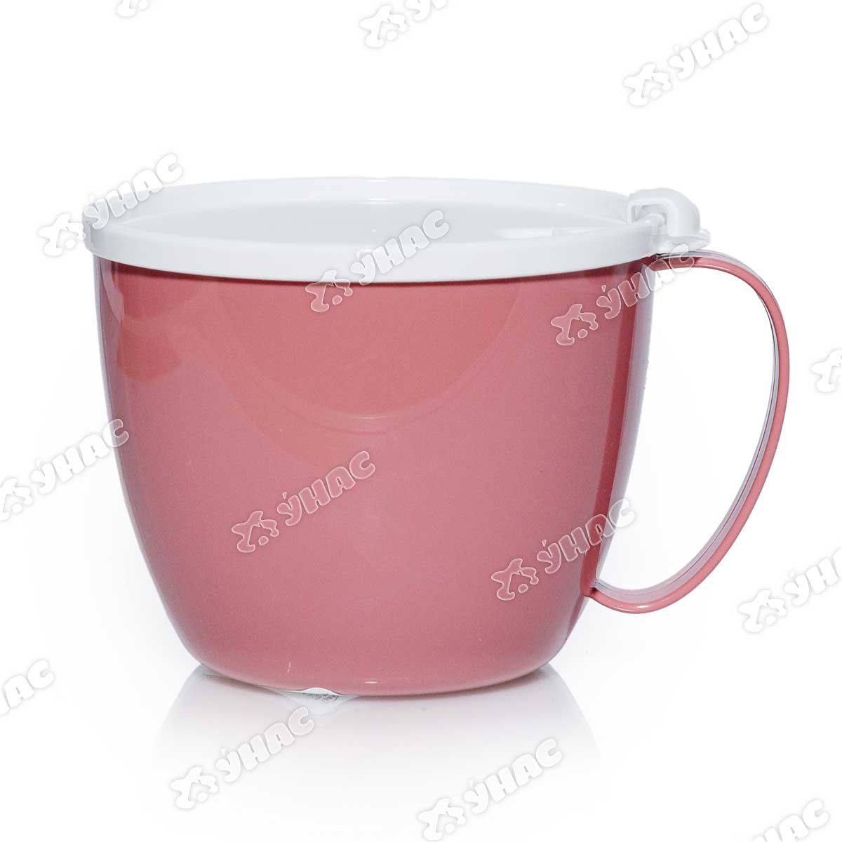 Кружка для заваривания лапши, супов и других горячих блюд. Имеет плотную крышку, удобную ручку и паровой клапан. Изготовлена из сертифицированного пищевого пластика. Изделие можно мыть в посудомоечной машине, использовать в морозильной камере, разогревать в микроволновой печи.Чашку можно использовать без крышки - для горячих напитков