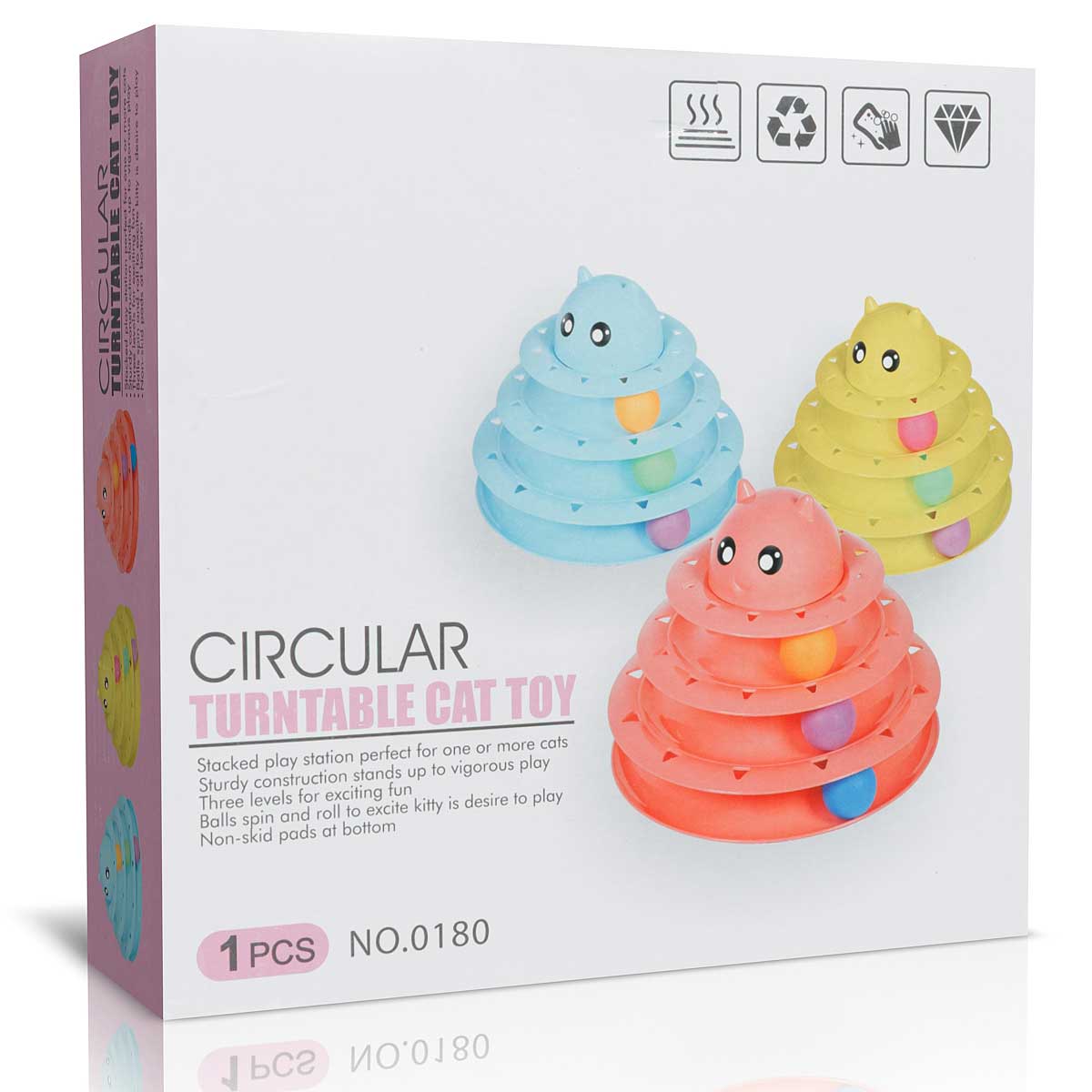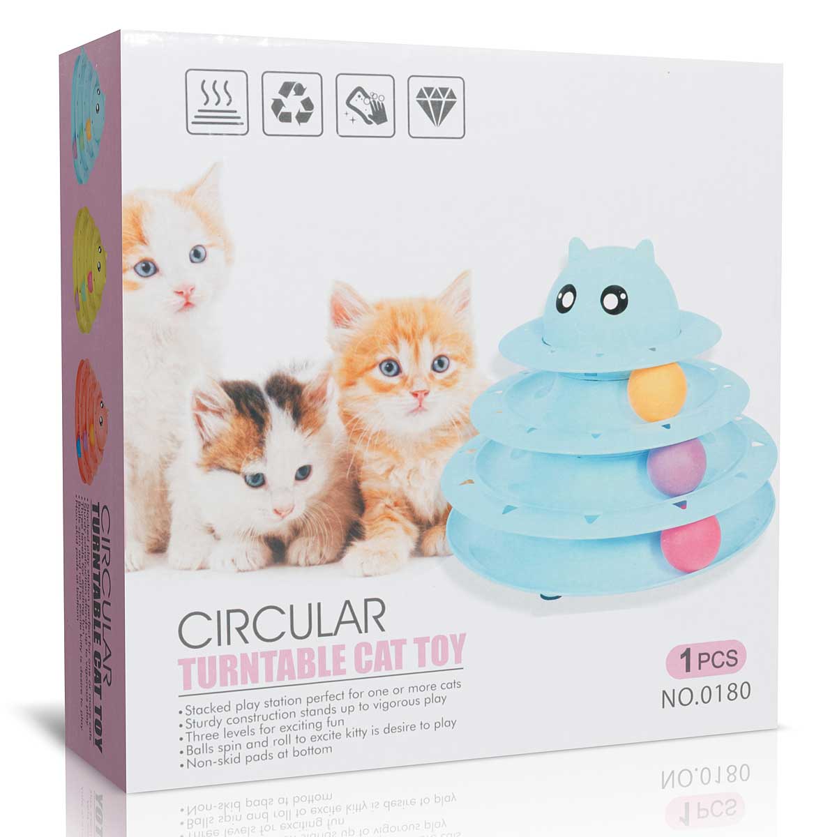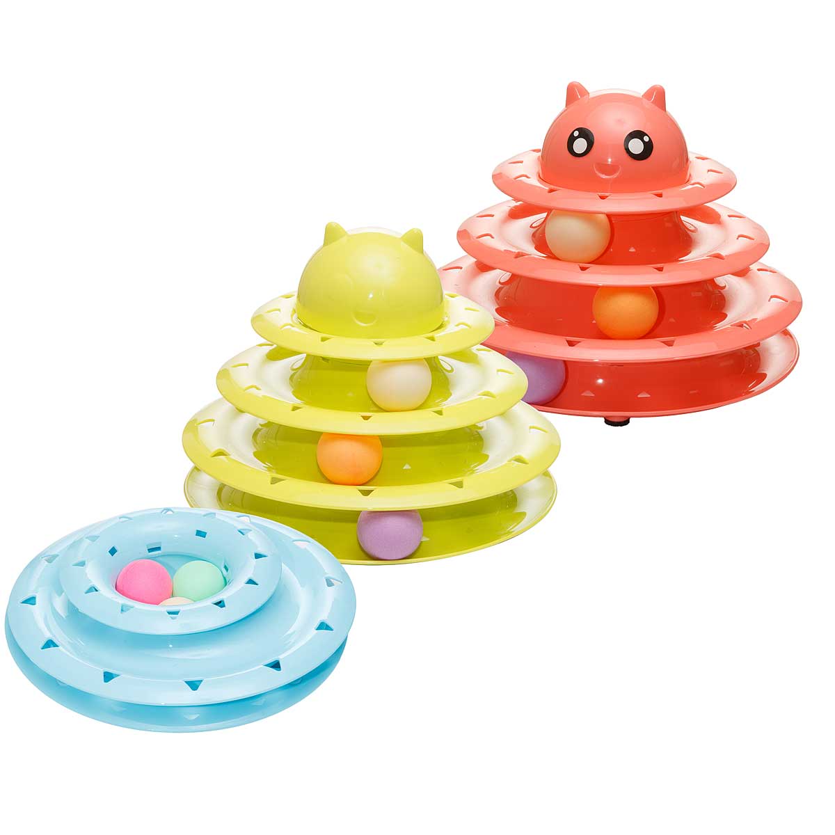 Игрушка для животных Пирамидка с мячами - яркий мячик катается по кругу, что очень привлекает внимание кошки. Оторваться невозможно! Как ни стараешься - всё равно не поймаешь, но и не потеряешь. А если мячики еще и на разных уровнях... немного сноровки и можно играть одновременно со всеми. Прочная и устойчивая конструкция. Противоскользящие прокладки на дне конструкции. Крупная игрушка не затеряется за мебелью.
