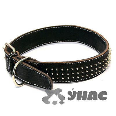 —Ошейник кожаный двойной с шипами-ёж, ширина 15 мм, обхват шеи от 21 до 27 см 00015114