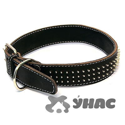 —Ошейник кожаный двойной с шипами-ёж, ширина 15 мм, обхват шеи от 24 до 30 см 00015117