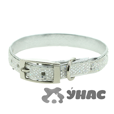 Ошейник "Синтетик" двойной "Диско" 10мм, обхват шеи 16-22см СЕРЕБРЯНЫЙ 00210148-27