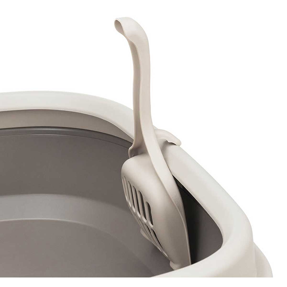 Рамка с бортом 5 см закрывает лоток со всех сторон. Верхний край имеет скруглённую форму. Благодаря этому наполнитель при интенсивном разбрасывании остаётся внутри лотка. Поверхность изделия имеет специальную поверхность Soft–touch, которая хорошо моется.