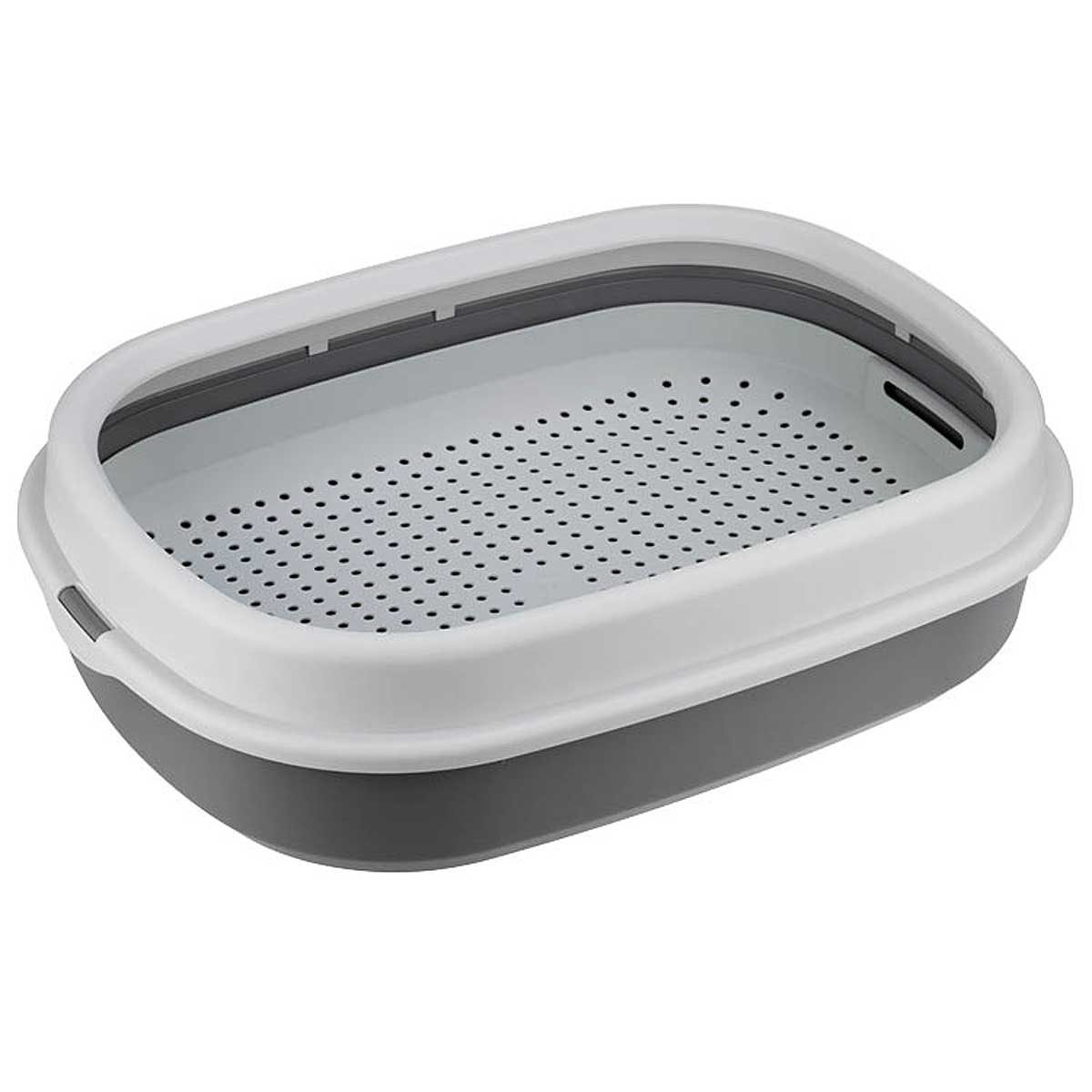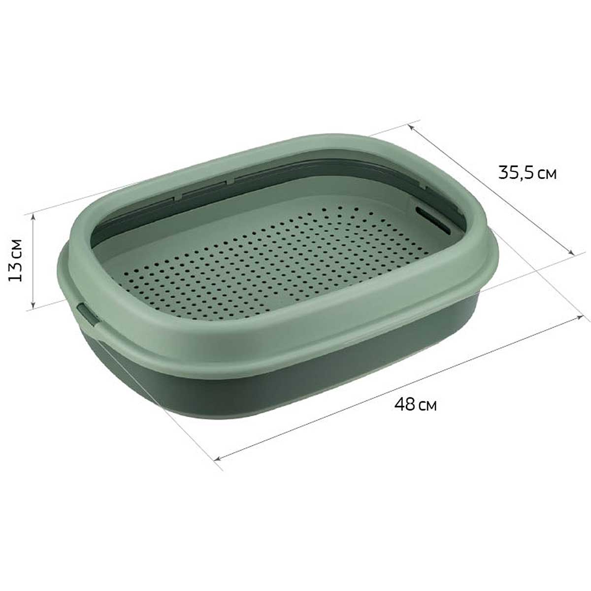 Лоток предназначен для кошек маленьких и средних пород. Изделие состоит из лотка, рамки и сетки. Съёмная сетка предотвращает контакт кошки с наполнителем, поэтому её лапки всегда чистые. Сетка имеет небольшой уклон к центру. Благодаря этому питомец безсознательно будет располагаться в центре лотка и ситуации с "промахом" сведутся к минимуму. Сетка имеет ножки высотой 25 мм, что позволит насыпать наполнитель в достаточном объёме. Лоток имеет специальное покрытие Soft–Touch, которое легко моется.