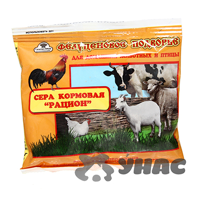 Сера кормовая натуральная высокой очистки используется для коров и молодняка КРС, коз, овец, кошек, собак и птиц, как один из основных компонентов кормовых и лечебных смесей. Кормовая добавка по внешнему виду представляет собой порошок с различными оттенками желтого цвета. Сера – это незаменимый белковый компонент, который обеспечивает качественные обменные процессы и участвует в построении клеточной структуры организма. Сера принимает участие в окислительно-восстановительных реакциях, обеспечивает полноценный процесс тканевого дыхания, способствует выработке дополнительной энергии, обеспечивает свертываемость крови, синтезирует коллаген и кератин, увеличивает образование антител, связывает тяжелые металлы и выводит их из организма, способствует: активизации пищеварения и обмена веществ, нормализует теплообмен; улучшению качества шерсти и пера; оказанию антибактериального и противопаразитарного действия; усилению защитных свойств организма; увеличению прироста живой массы и повышению удоев и жирности молока;