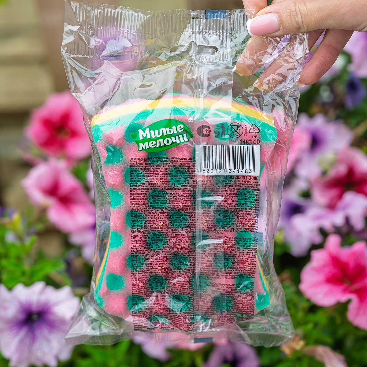 Губка Милые мелочи Тропиканка с петелькой предназначена для душа. Хорошо очищает загрубевшую кожу. Не вызывает аллергии. Материал биоразлагаемый. Имеет массажный эффект. Губка для тела позволяет эффективно очистить кожу и улучшить ее текстуру, стимулировать кровообращение и улучшить внешний вид. Эта массажная губка идеально подходит для ежедневного использования в ванне, душе, бани или сауне, помогая сохранить вашу кожу здоровой и ухоженной! Прочная и долговечная мочалка для душа легко промывается и также быстро сохнет.
