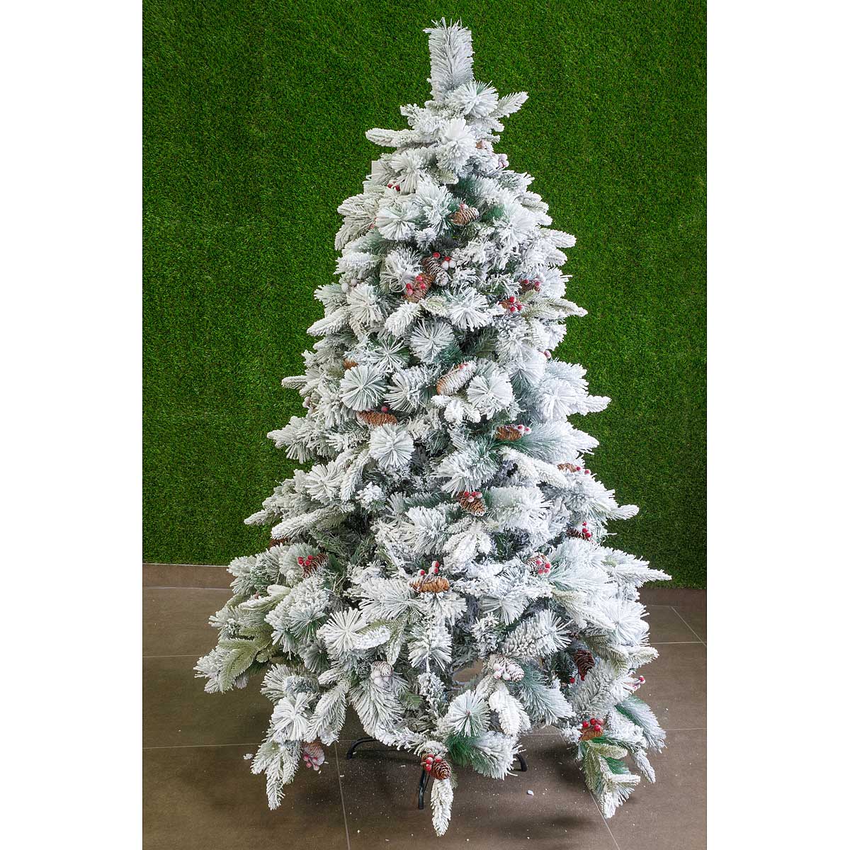 Елка XO-2325S-6ft-180 180см 695 веток заснеженная с шишками/ягодами метал. подставка РЕ+ПВХ