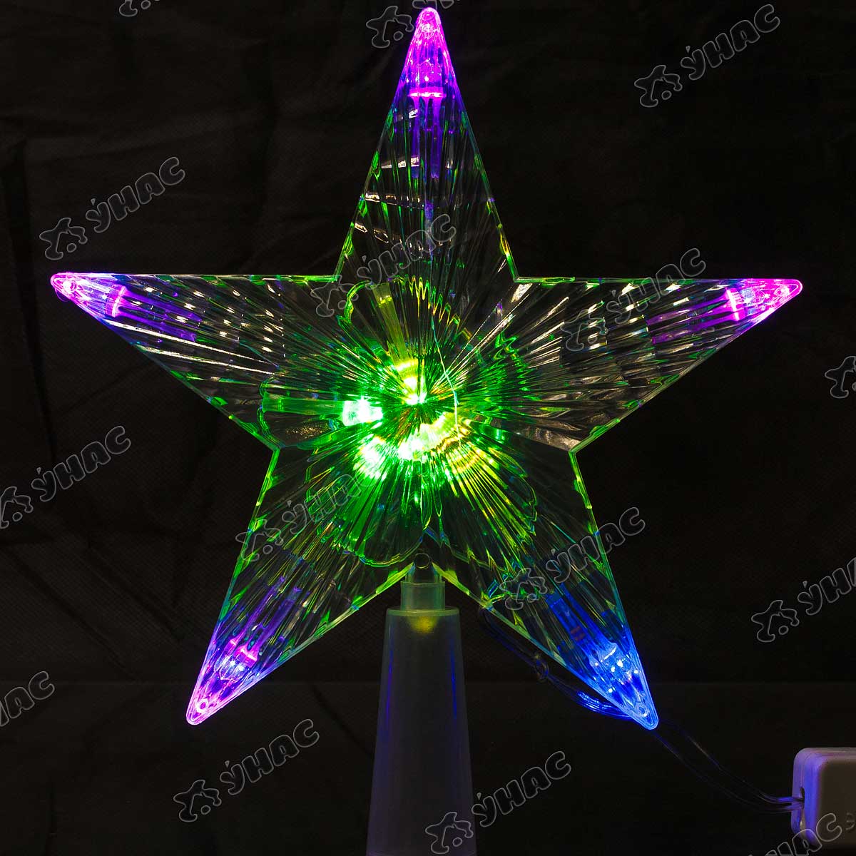 Гирлянда верхушка на ёлку – это стильное и яркое украшение, которое станет прекрасным дополнением к праздничной атмосфере. Фигурка выполнена в виде звезды, что придает ей особый шарм и делает ее узнаваемой. Цвет свечения – мульти, что позволяет создать на елке разнообразные и яркие оттенки.