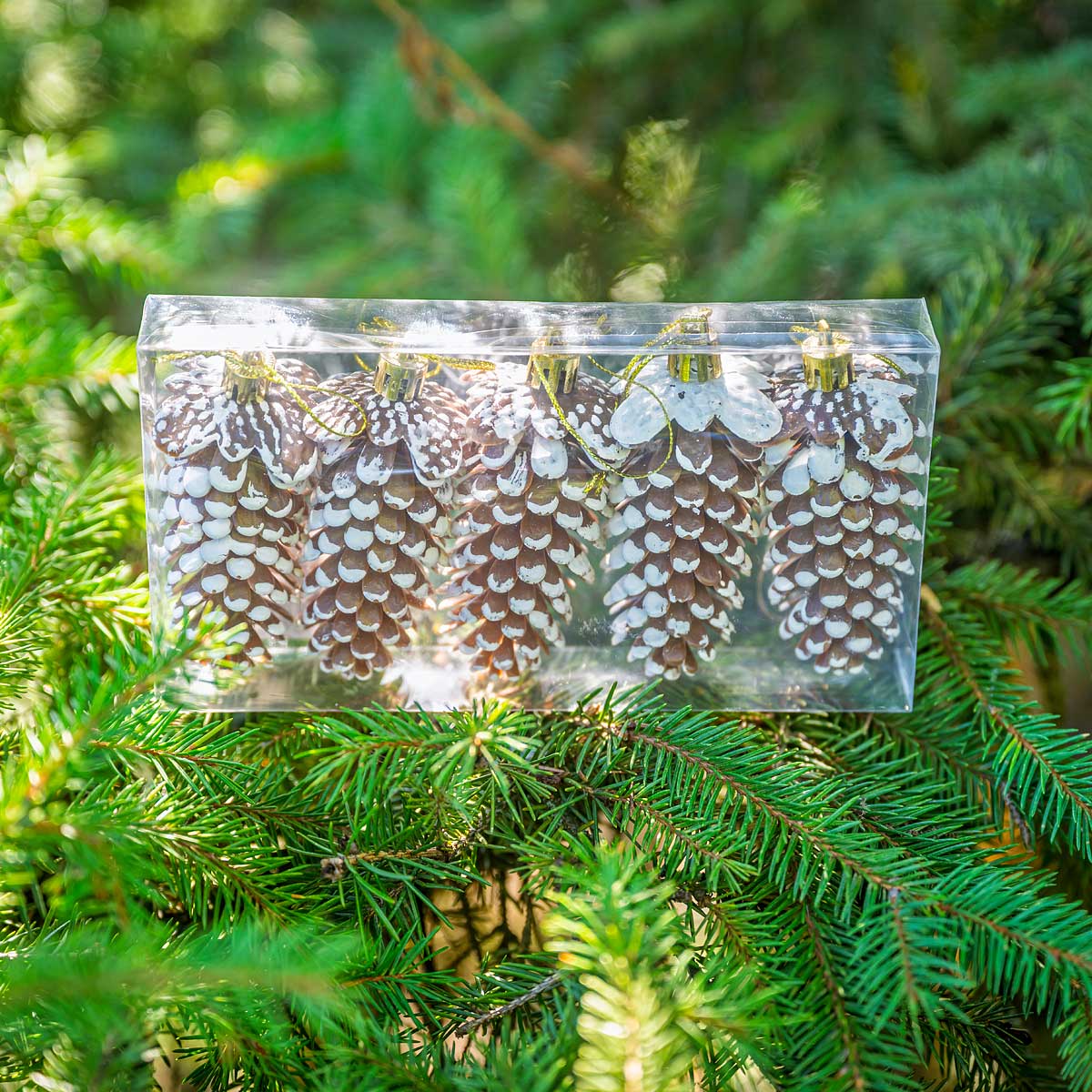 Шар 9DC5-H32B-19 5шт 9см "Шишка" шоколадная с белой каймой (288)