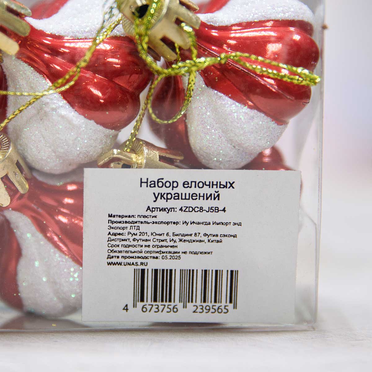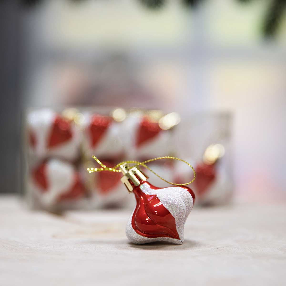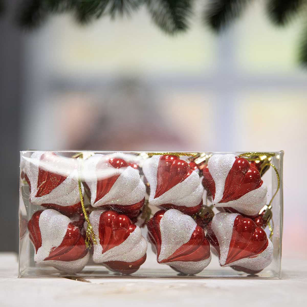 Шар 4ZDC8-J5B-4 8шт 4см "Юла" красная с белыми блестящими дольками